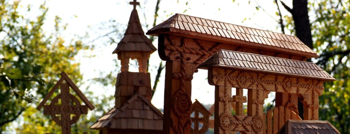 Porți Maramureșene: Adesea, o biserică de lemn este completată de o poartă monumentală la intrare, specialitatea casei la BârsanART.